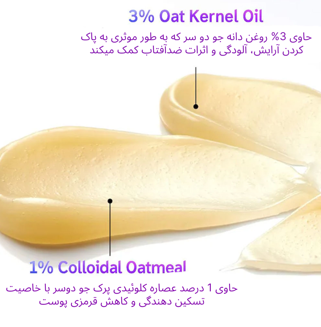 حاوی روغن جو دوسر و جو دوسر کلوئیدی: کمک به کاهش قرمزی و حساسیت پوست و تقویت سد رطوبتی.